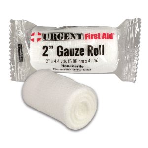 These gauze rolls are 2” wide and 4.4 yards. They can be used to control bleeding for deep scratches and cuts.
