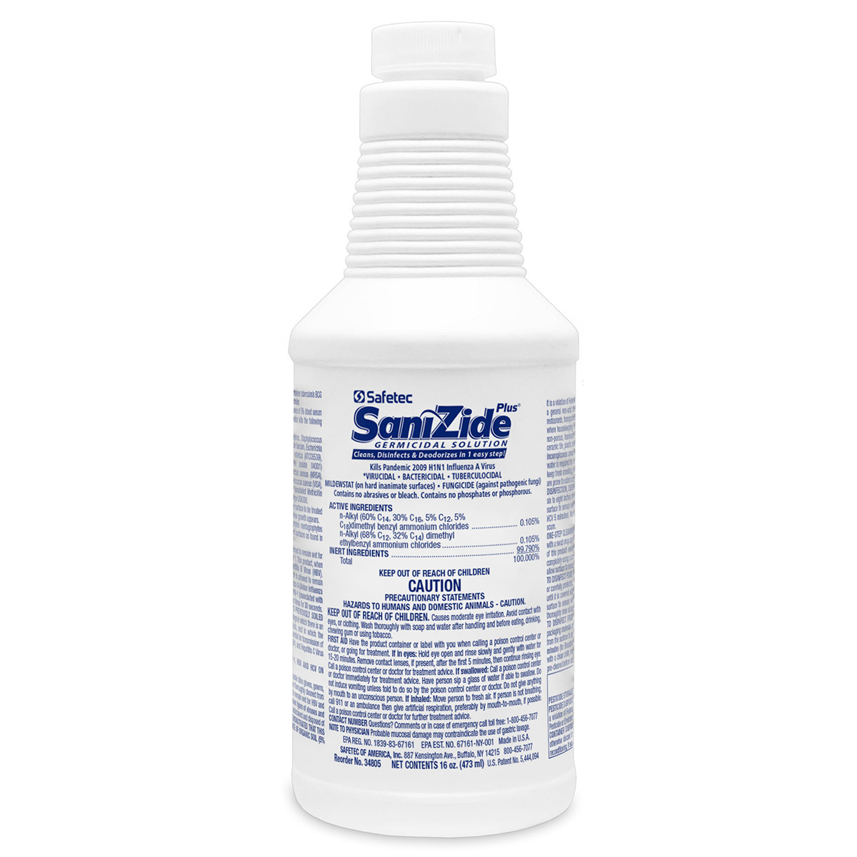 Ready-to-use, hospital grade, hard surface disinfectant/deodorizer. Our quatemary ammonium, alcohol free formulation is non-flammable making SaniZide Plus safe to ship, as well as non-corrosive. SaniZide Plus helps you comply with the OSHA Bloodborne Pathogens Standard, which requires the use of an “appropriate disinfectant” that is tuberculocidal and virucidal against HIV-1 and HBV. Now effective against Hepatitis C Virus (HCV). Controls mold and mildew. Neutralizes odors and freshens in one step.